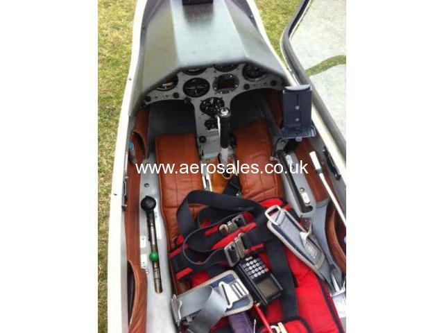 Glider was re-gelled in Poland approx 5 years ago and is in immaculate condition. Comes complete with cotton hanger covers, Jaxida covers, parachute, Garmin GPS, D type logger, trestles, wing rigging aid,tow out gear,radio, Cambridge L Nav,turn and slip, AI, oxygen,wooden trailer. All AD's completed with EASA ARC. The glider has been stored in its trailer under cover for the last 8-10 years.